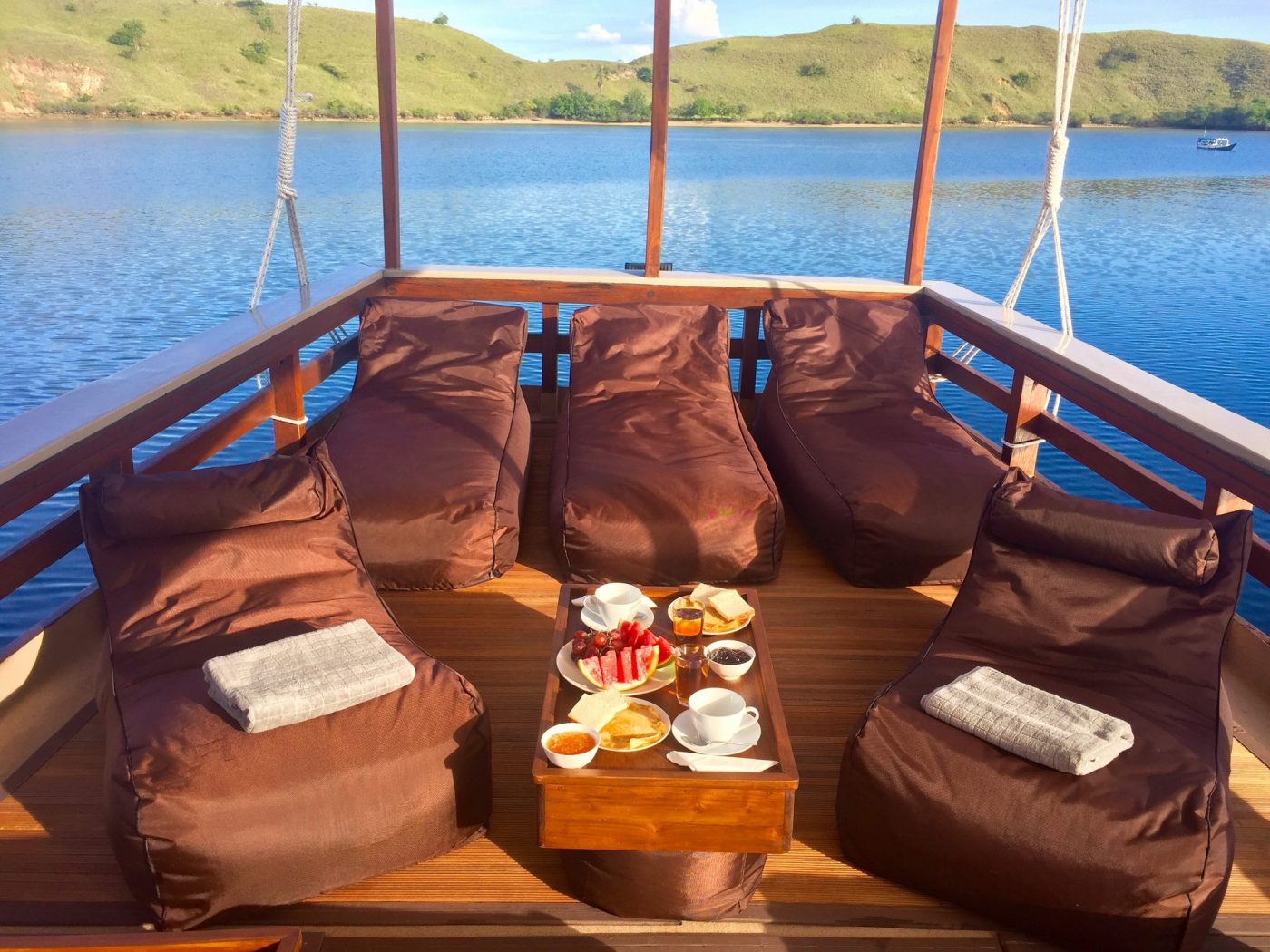 All the living areas on board, both interior and exterior, have been designed to offer maximum comfort. There are many places on the boat where you can simply sit back and relax, as you contemplate the beautiful vistas of the Komodo National Park.
