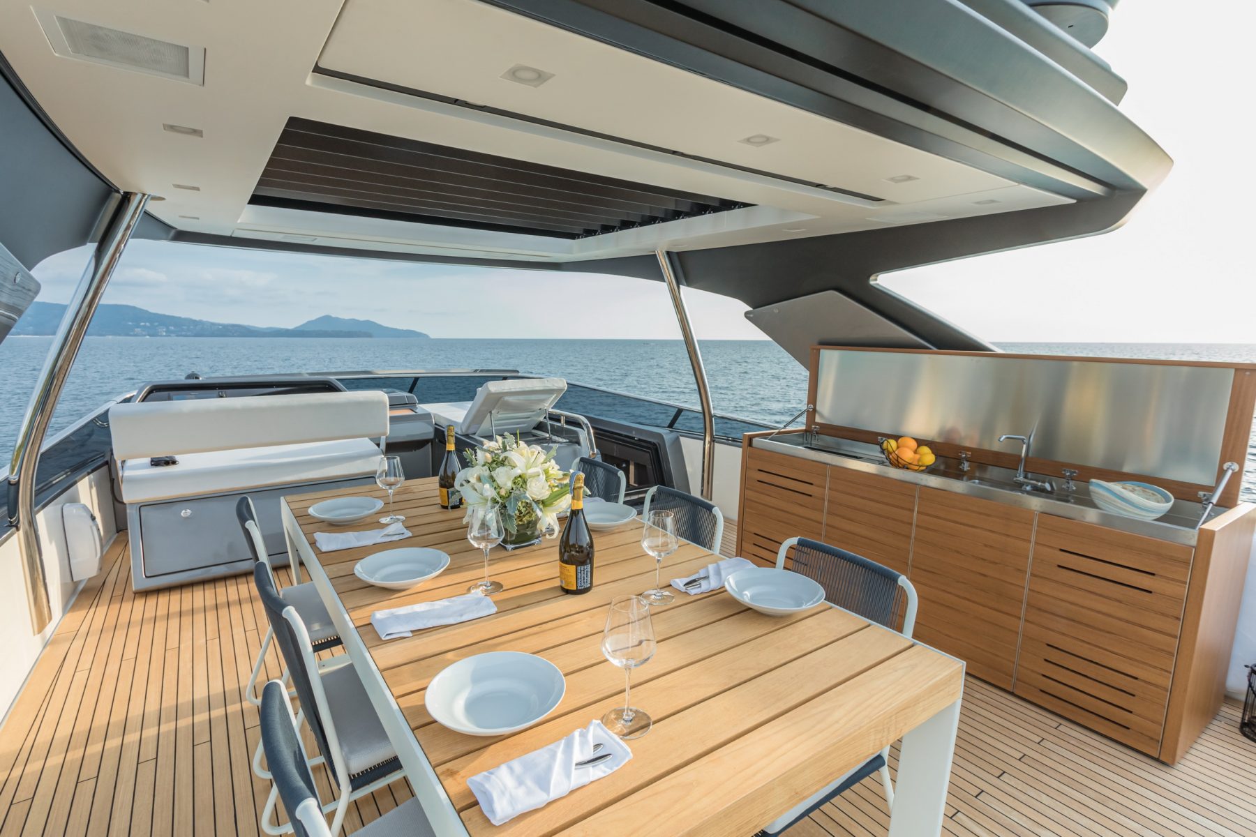The SL78 is the entry-level model in Sanlorenzo’s successful SL range of fibreglass planing-hull motor yachts. Sanlorenzo has channelled its decades of experience into the SL78, combining signature styling with new innovations and an unparalleled level of customisation within its category. The SL line is sporty and fast whilst impressively economical at lower speeds with the ability to travel longer distances. The yacht features large windows on the main deck, so the main saloon is bathed in natural light, making the entire space seem even bigger than it already is. The layout features an open plan main saloon with the galley on the main deck and four guest cabins including one master, one VIP and two twin cabins. Plenty of spaces to relax and retreat.