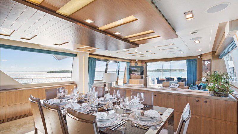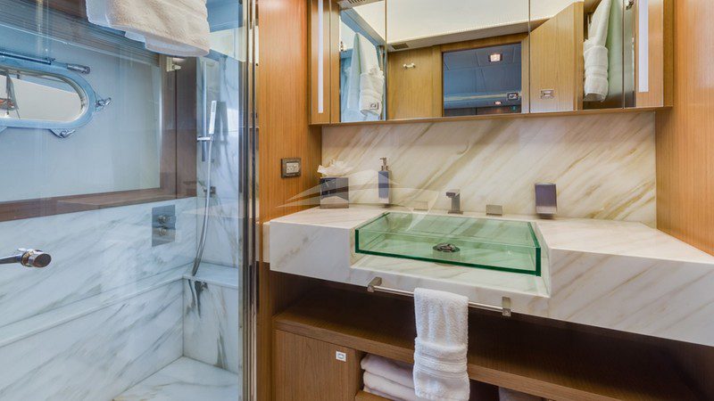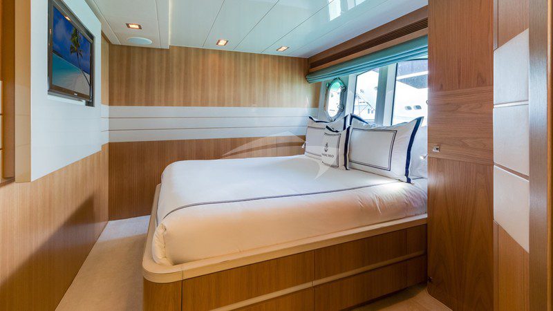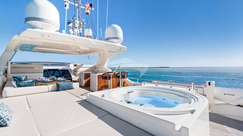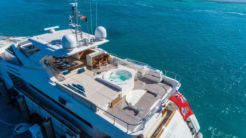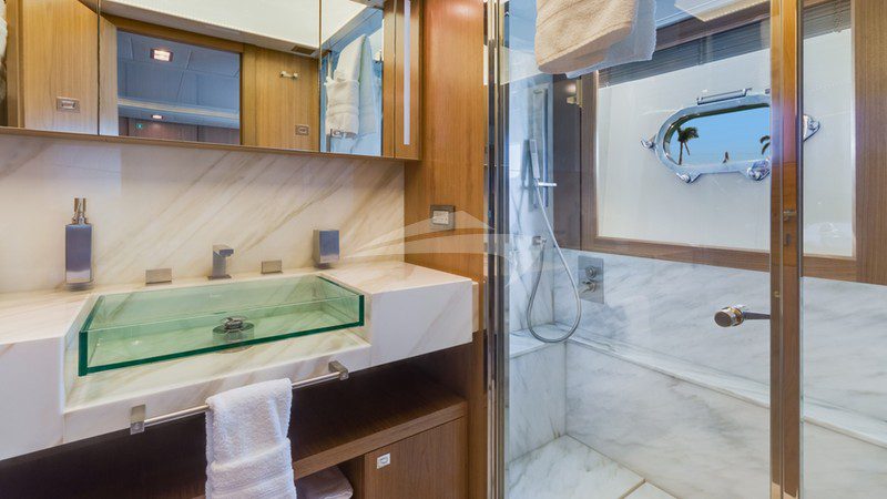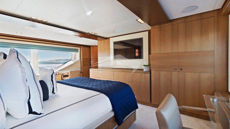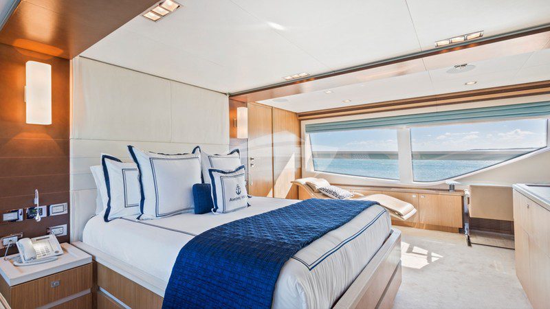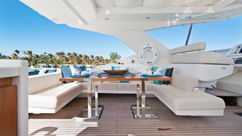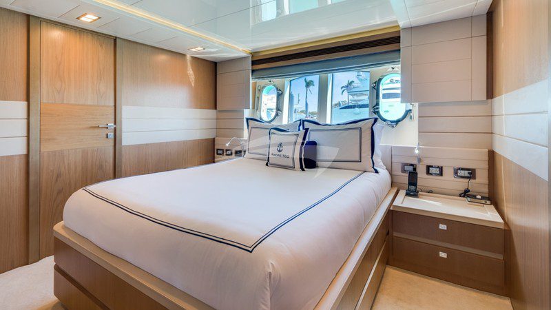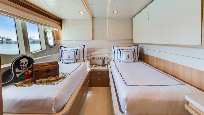 The 100ft Amore Mio was built by Ferretti and newly refitted in 2017. Her interior configuration has been designed to comfortably accommodate up to 10 guests overnight in 5 cabins, comprising a master suite, 2 double cabins and 2 twin cabins. She is capable of carrying up to 5 crew onboard to ensure a relaxed luxuary yacht experience.