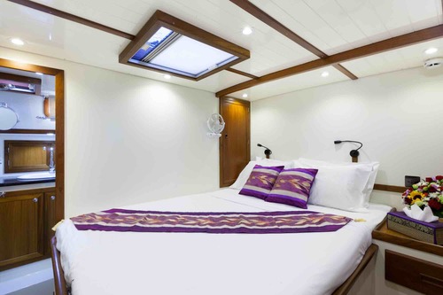 With a lovely master cabin at aft, two further double cabins and a twin berth cabin, there is accommodation for up to 8 guests. All cabins come with their own en-suite facilities. Dallinghoo also offers a spacious aft-deck with table and seating for all her guests to wine and dine, as well as ample forward deck space for enjoying the sail and the sun.