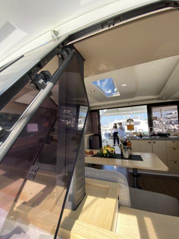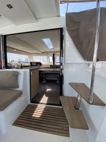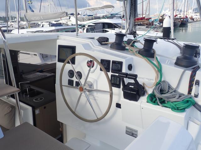 As with most Fountain Pajot designs it has an elevated helms position provides excellent visibility. Also, with all halyards and sheets coming back to the helm it makes this boat easy to sail if you are short on experienced crew.