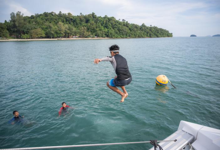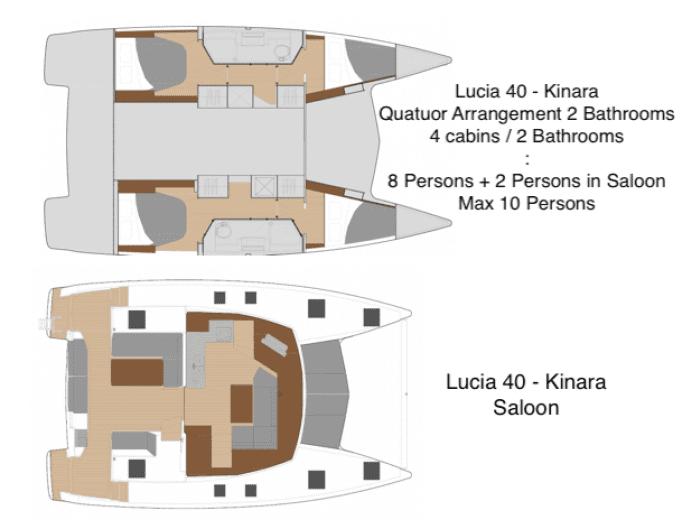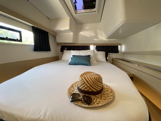 In each of the hull you will find 2 double cabins each shared bathroom and shower facilities. Fans are fitted throughout the boat for your comfort.