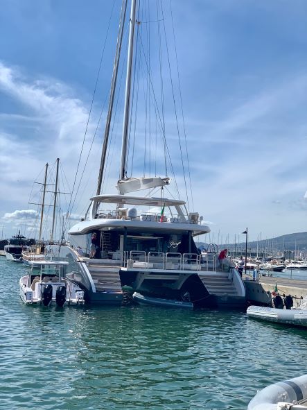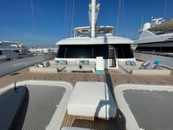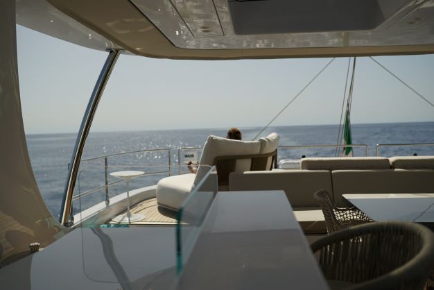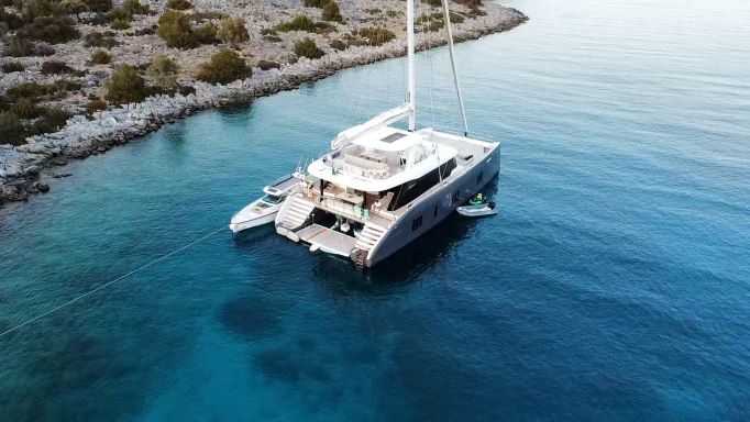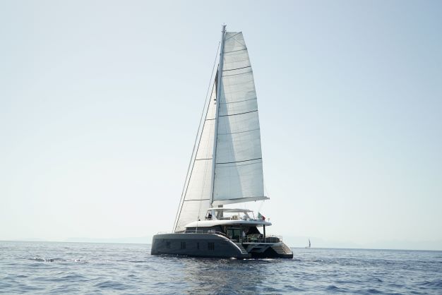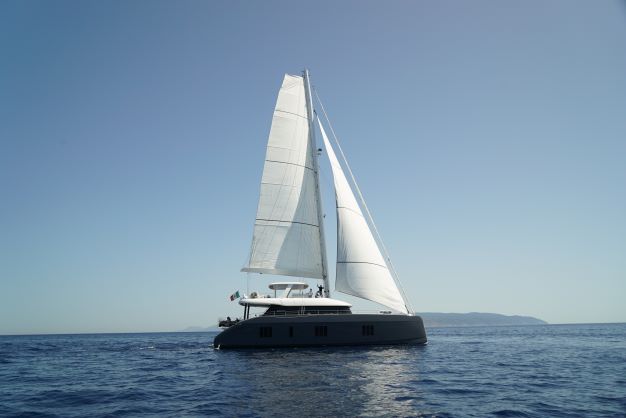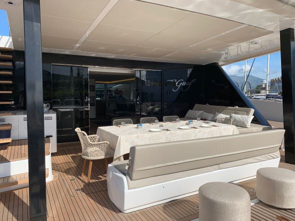 Genny is a luxury Sunreef 80 catamaran for charter in Greece, she offers large living spaces with an overall surface of more than 340 square meters. Whether from Athens, the Saronic Gulf, the Aegean Sea, the Cyclades, the Dodecanese Islands or the Ionian Sea, this magnificent yacht will bring you satisfaction for your luxury cruise in Greece.
