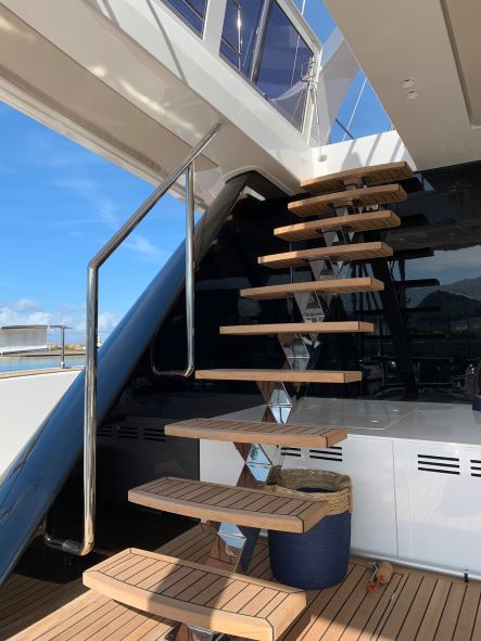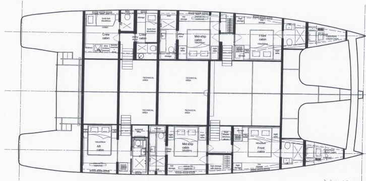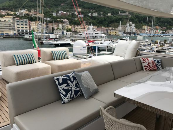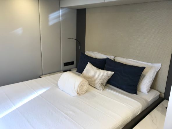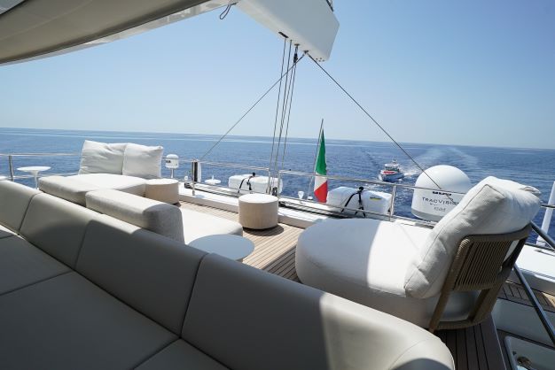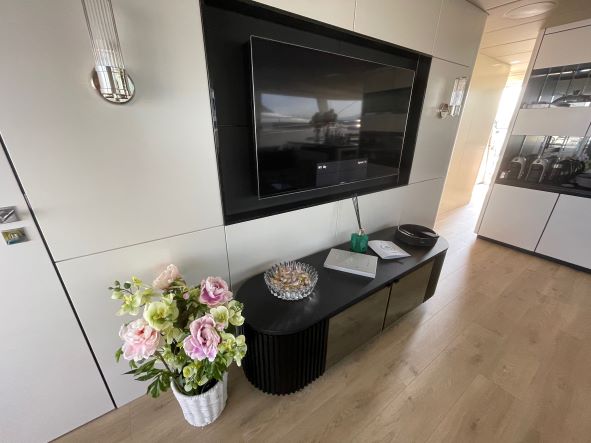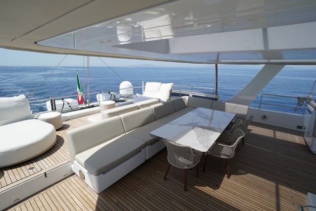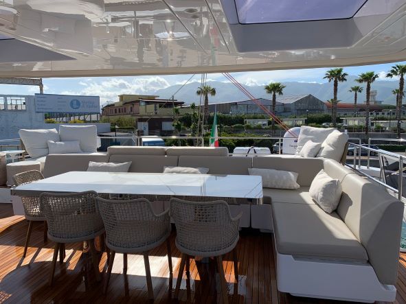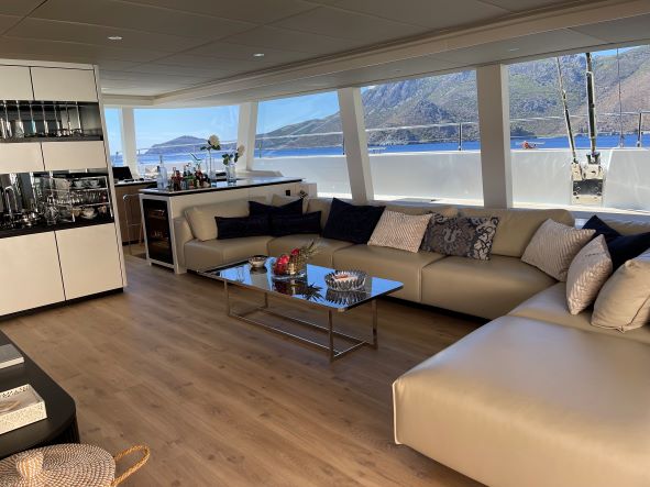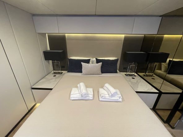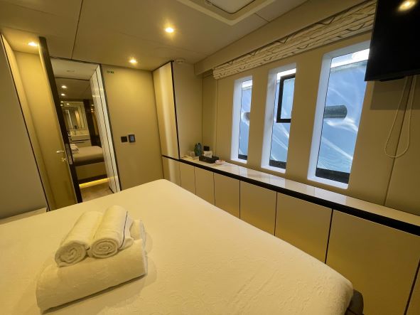 She has a large main deck with a spacious living room. Genny has been designed and built with the finest materials like quartz, teak and metal that complete the space with unheard of luxury. This luxury catamaran offers accommodation for up to 10 people in a master suite and 4 double cabins. In a refined ambience, guests will enjoy relaxing in the main lounge which extends over almost 50 square meters.