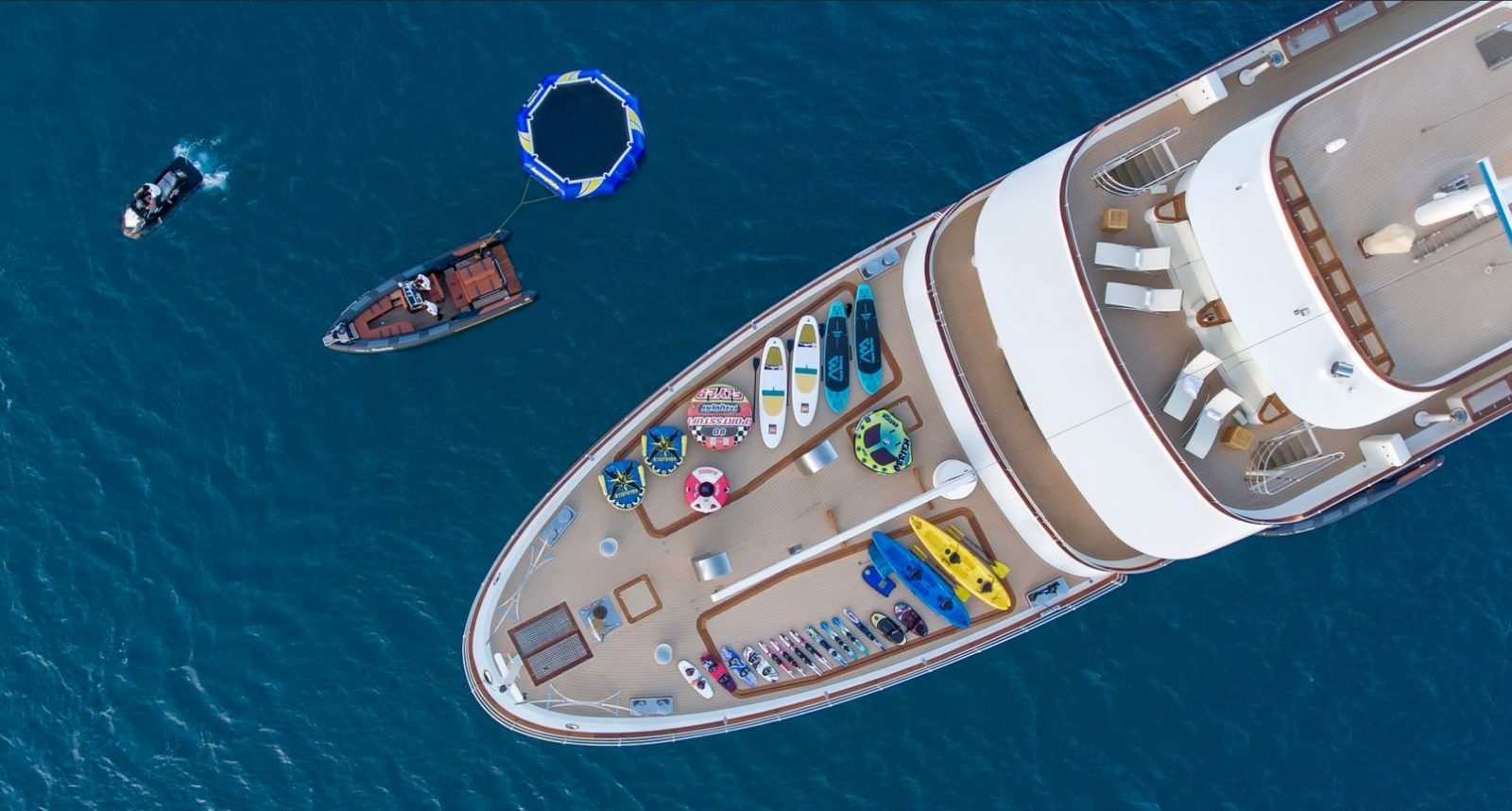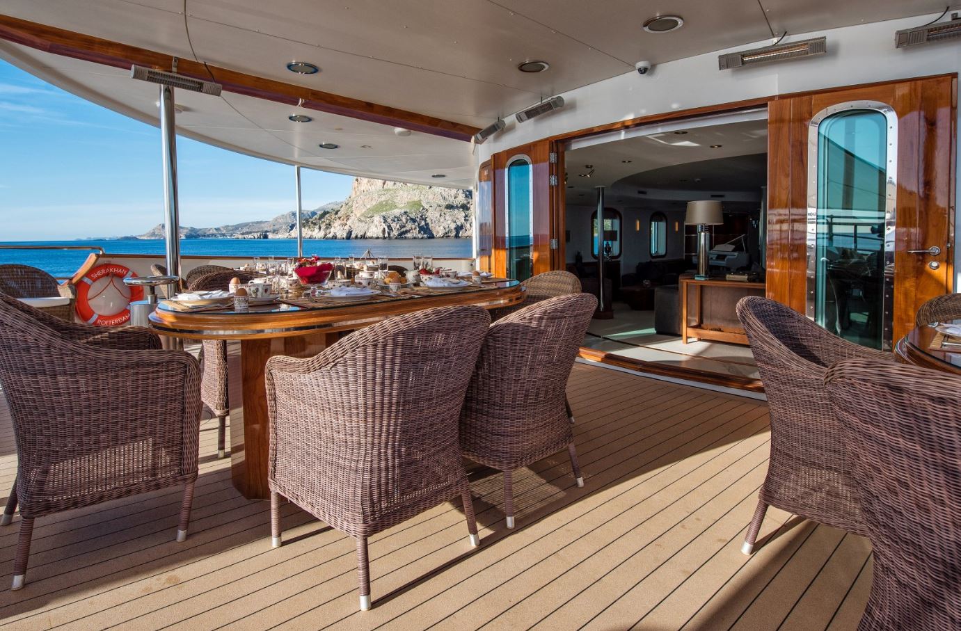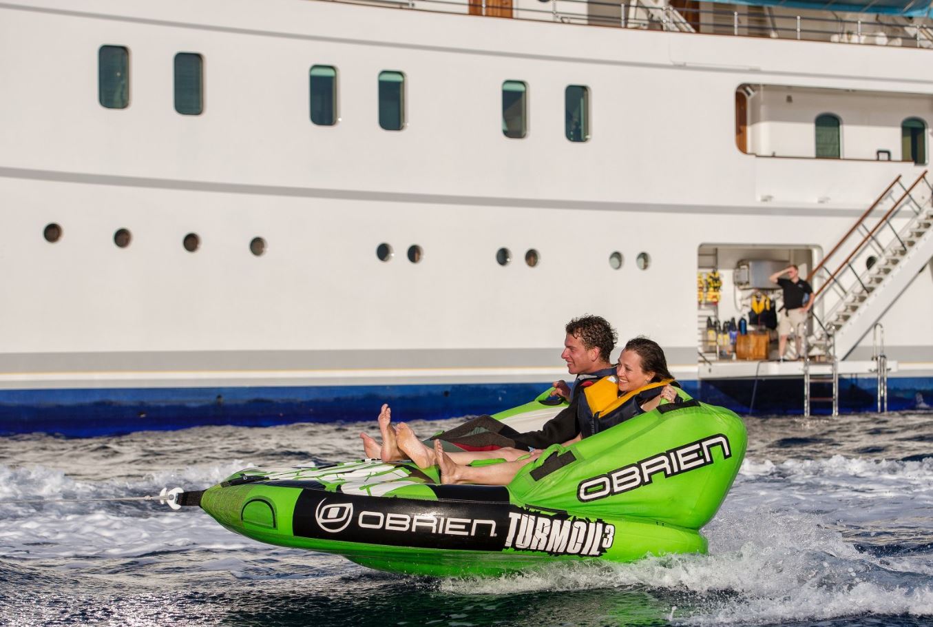 Combining wide decks & the glass bottom 18-person Deck Jacuzzi, classic-modern combined and luxurious interior décor, spacious and versatile accommodation with themed cabins, as well as a wide variety of water toys, SHERAKHAN gives a feeling of grandeur and comfort, apparently a top choice of superyacht to be chartered for large charter groups of friends, family and corporate yacht charters for up to 26 guests.