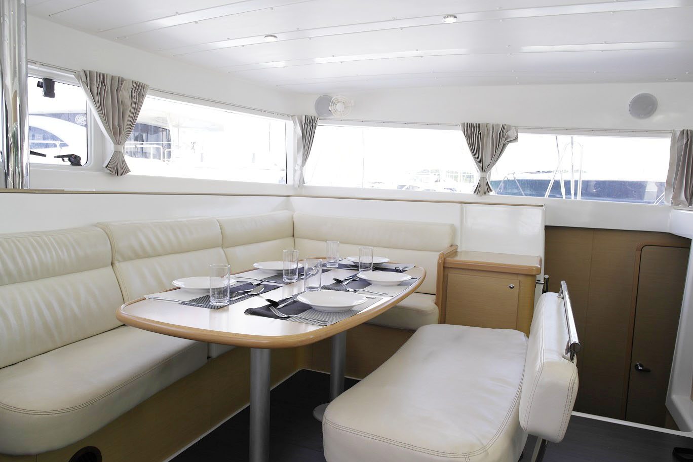 Equipped with four cabins, MISS COCO is able to carry up to 10 guests onboard. All her spaces are extremely versatile and the cockpit can be transformed into a dining area or lounge. Large vertical windows in the saloon and cabins flood guest spaces with natural light. Large and convenient opening hatches, wide side decks and a spacious aft deck are proven to be easy and safe to walk. The ideal yacht for making the most of Phuket, she is sure to book up fast.