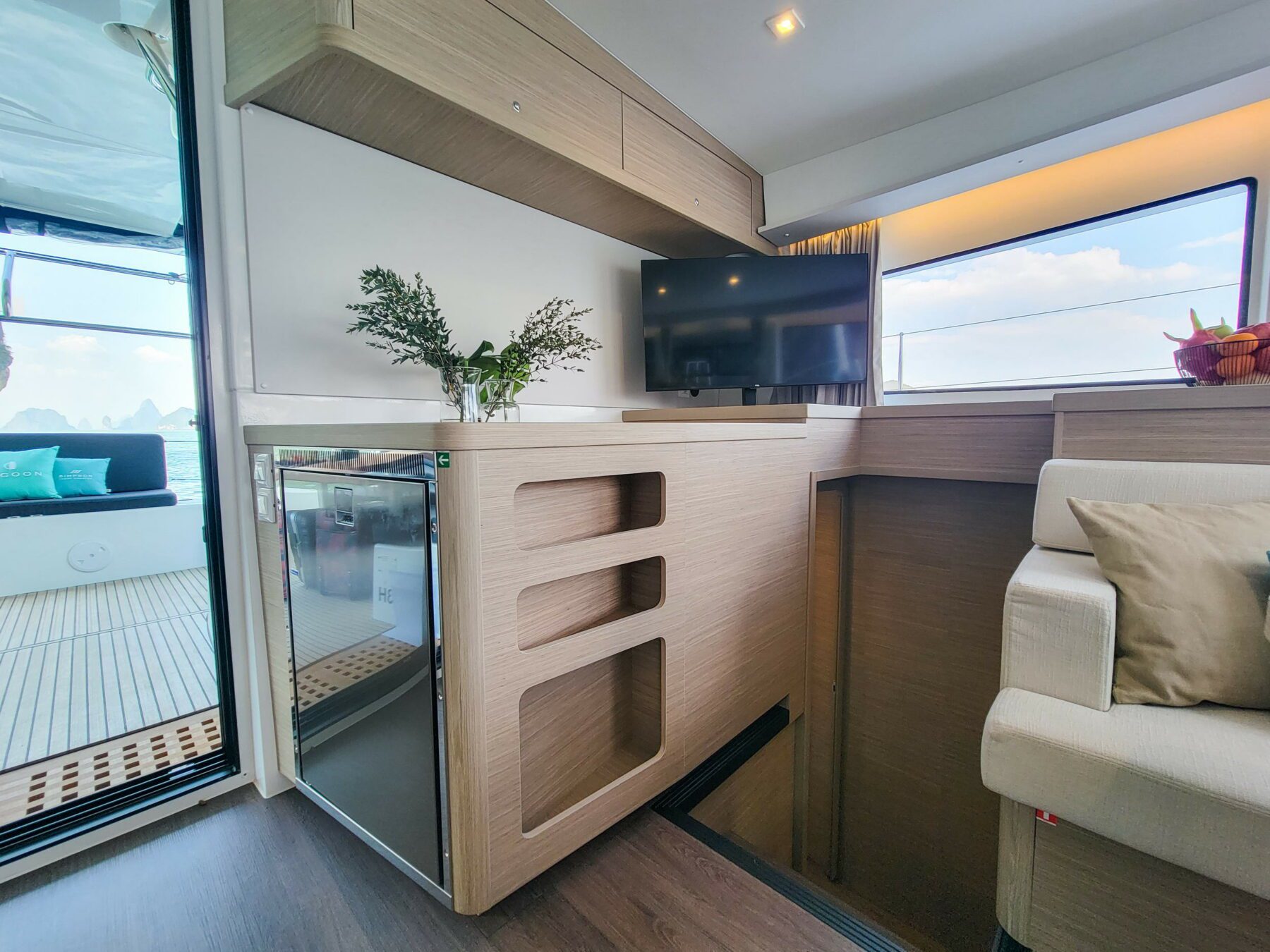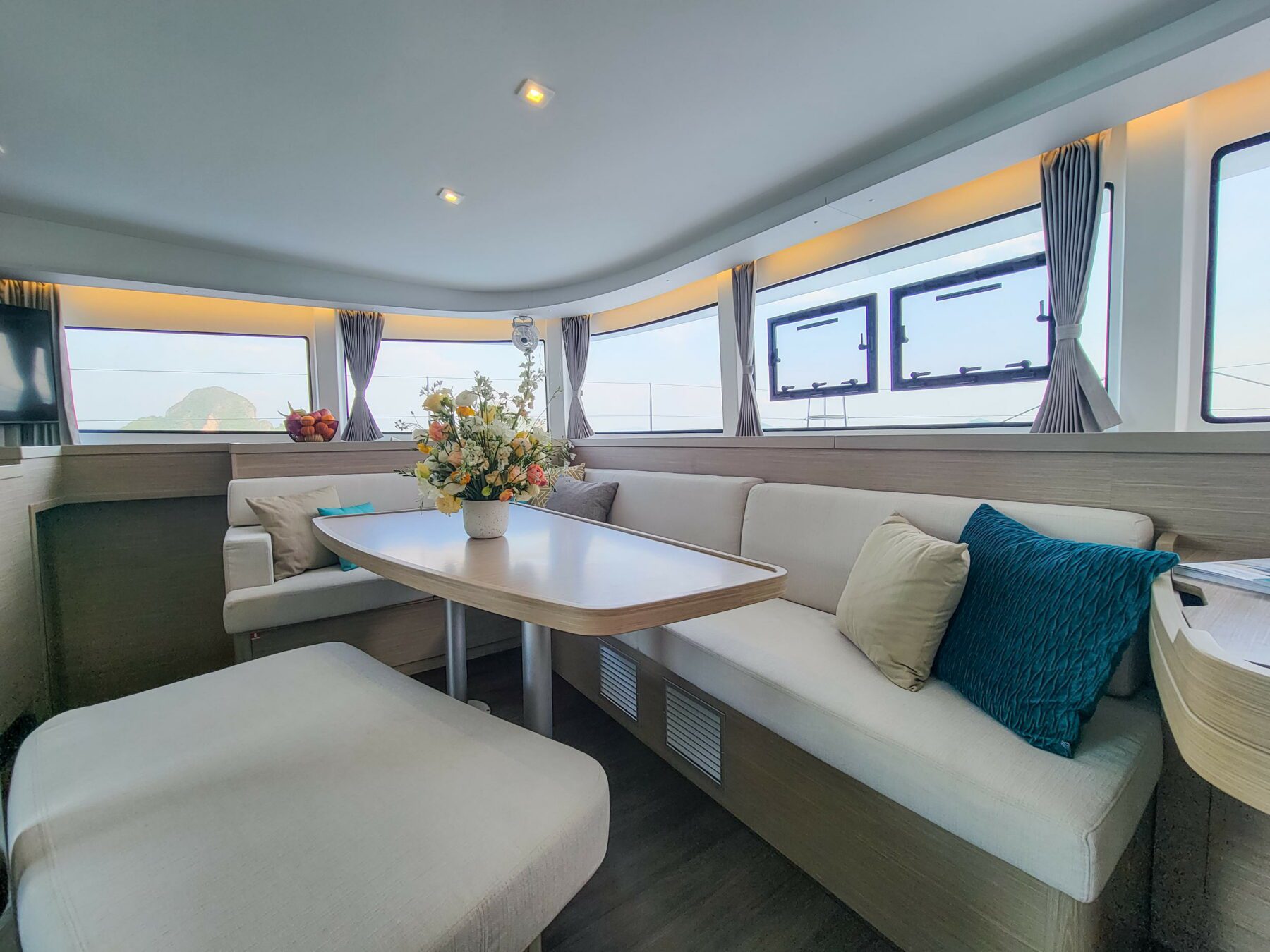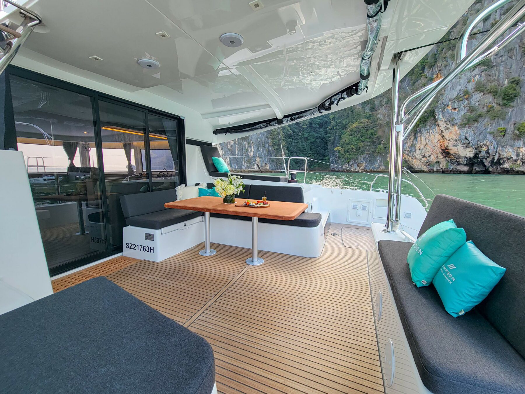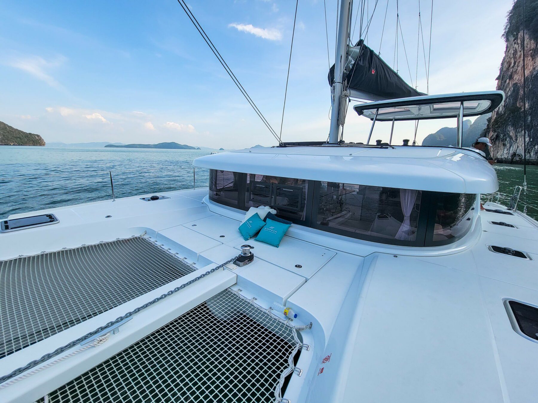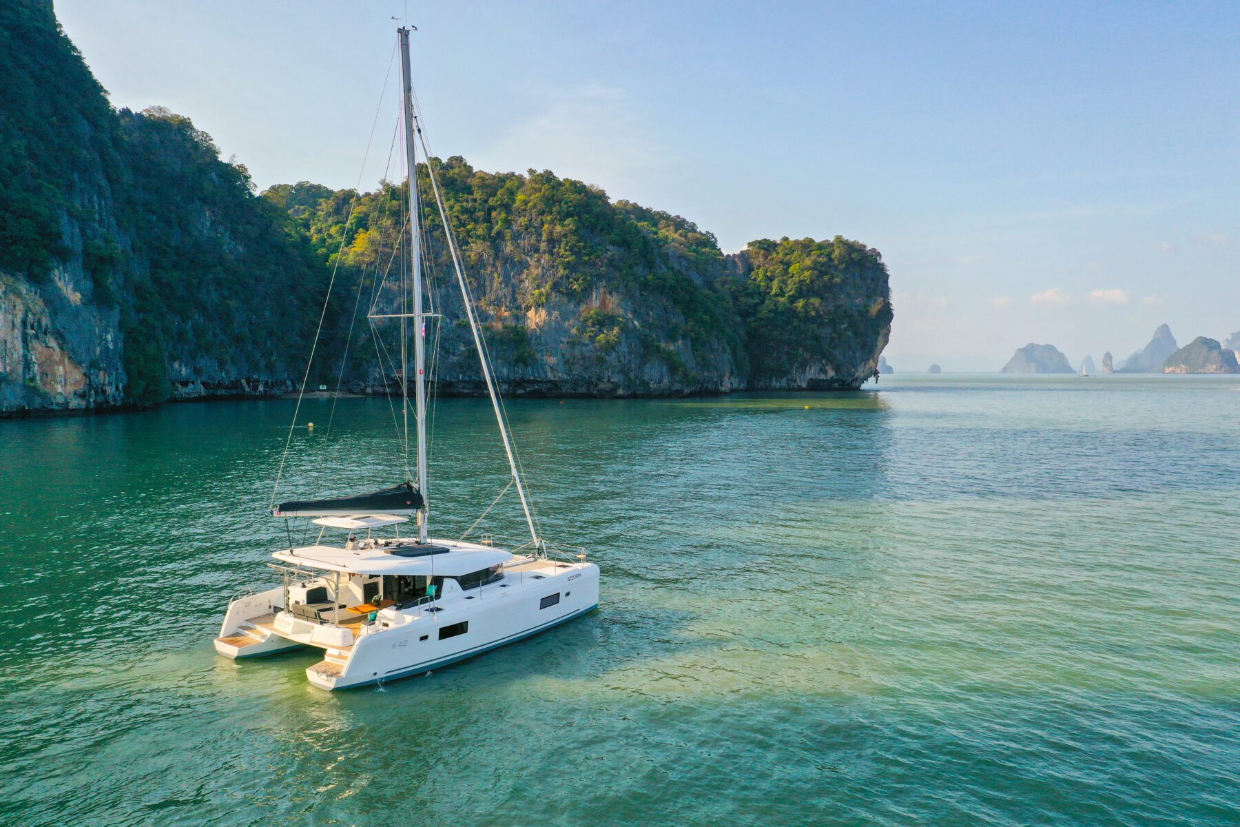 Step aboard the Lagoon 42, a vessel that redefines elegance on the open seas. Fresh to the Simpson Yacht Charter fleet, this beauty is ready to take you on an unforgettable journey through the pristine waters of Southeast Asia. With three guest cabins on board, she is ideal for a family trip, with a well-equipped kitchen for meals and snack preparation, a stunning cockpit offering shade and breeze in equal amounts and easy, direct access to the sea with swim ladders.