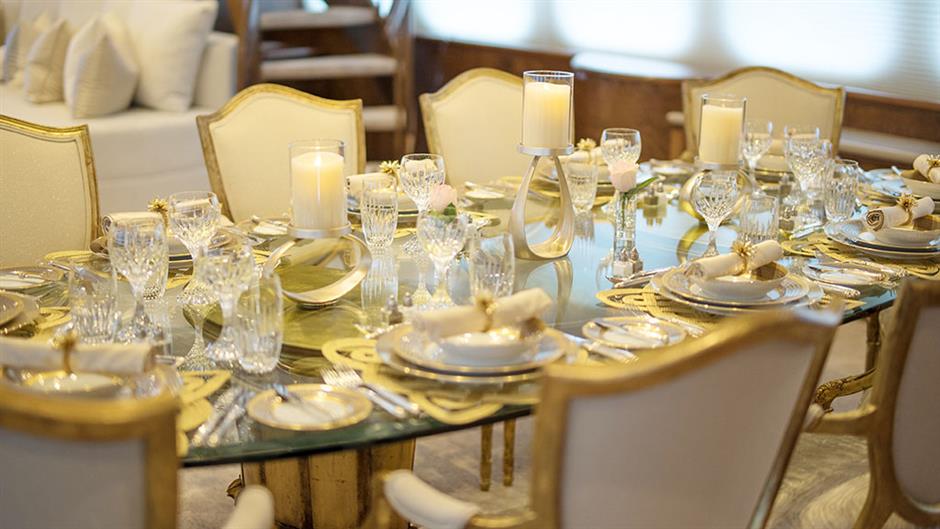 Внутренняя планировка Grand Illusion позволяет разместить до 11 гостей в 6 комнатах, включая мастер-каюту. На борту яхты также могут находиться до 7 членов экипажа, чтобы обеспечить расслабленное пребывание на роскошной яхте. Нестареющий стиль, красивая мебель и роскошные кресла создают элегантную и комфортную атмосферу.