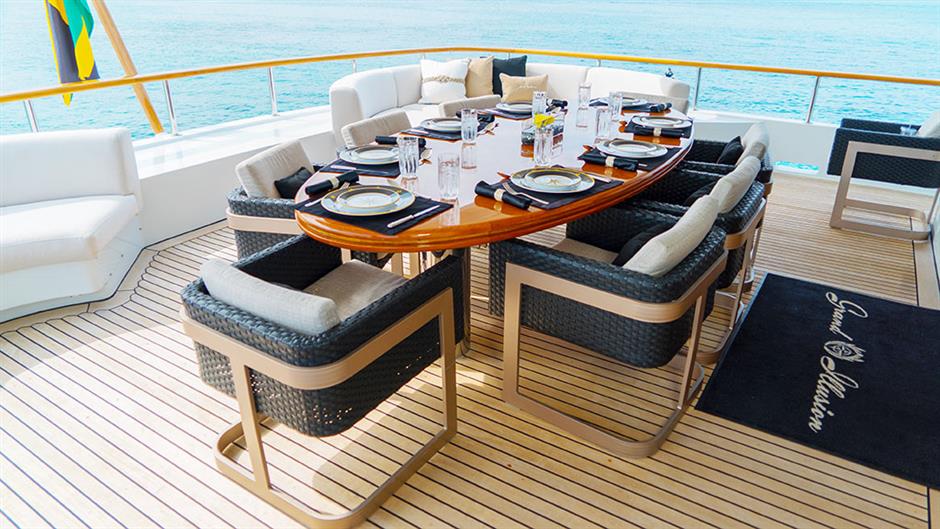 Впечатляющие возможности для отдыха и развлечений Grand Illusion делают ее идеальной чартерной яхтой для общения и развлечений с семьей и друзьями.