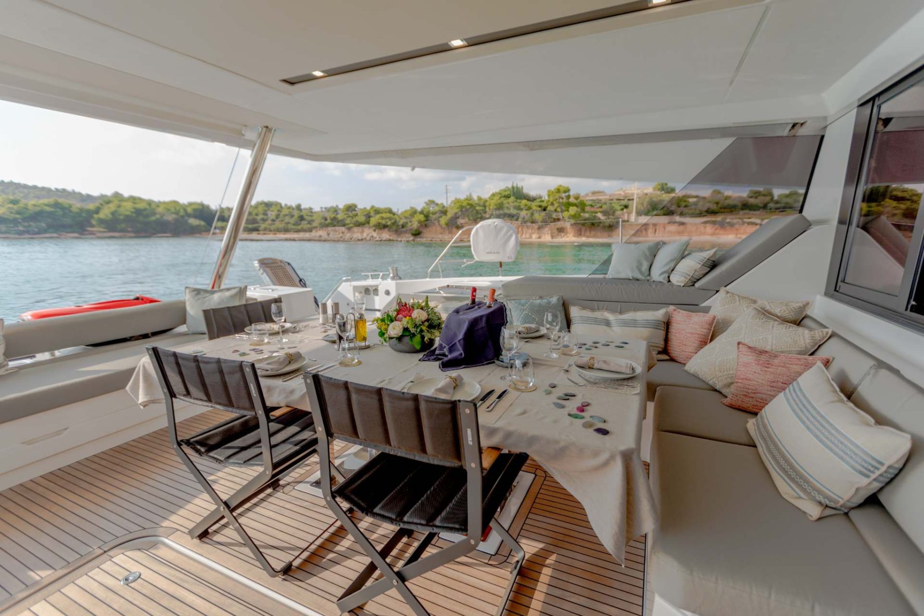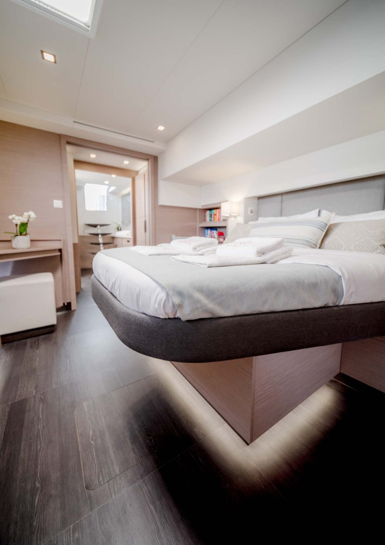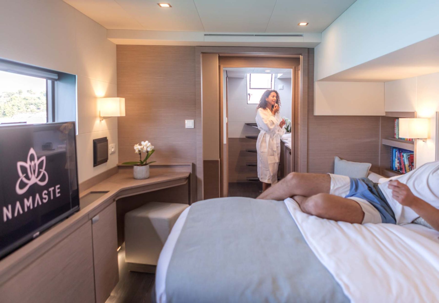 S/Y NAMASTE embodies the French way of life that celebrates the philosophy of carpe diem. She has a large master cabin, two queen bed cabins as well as a large twin cabin with bunk beds with direct access to the deck.
