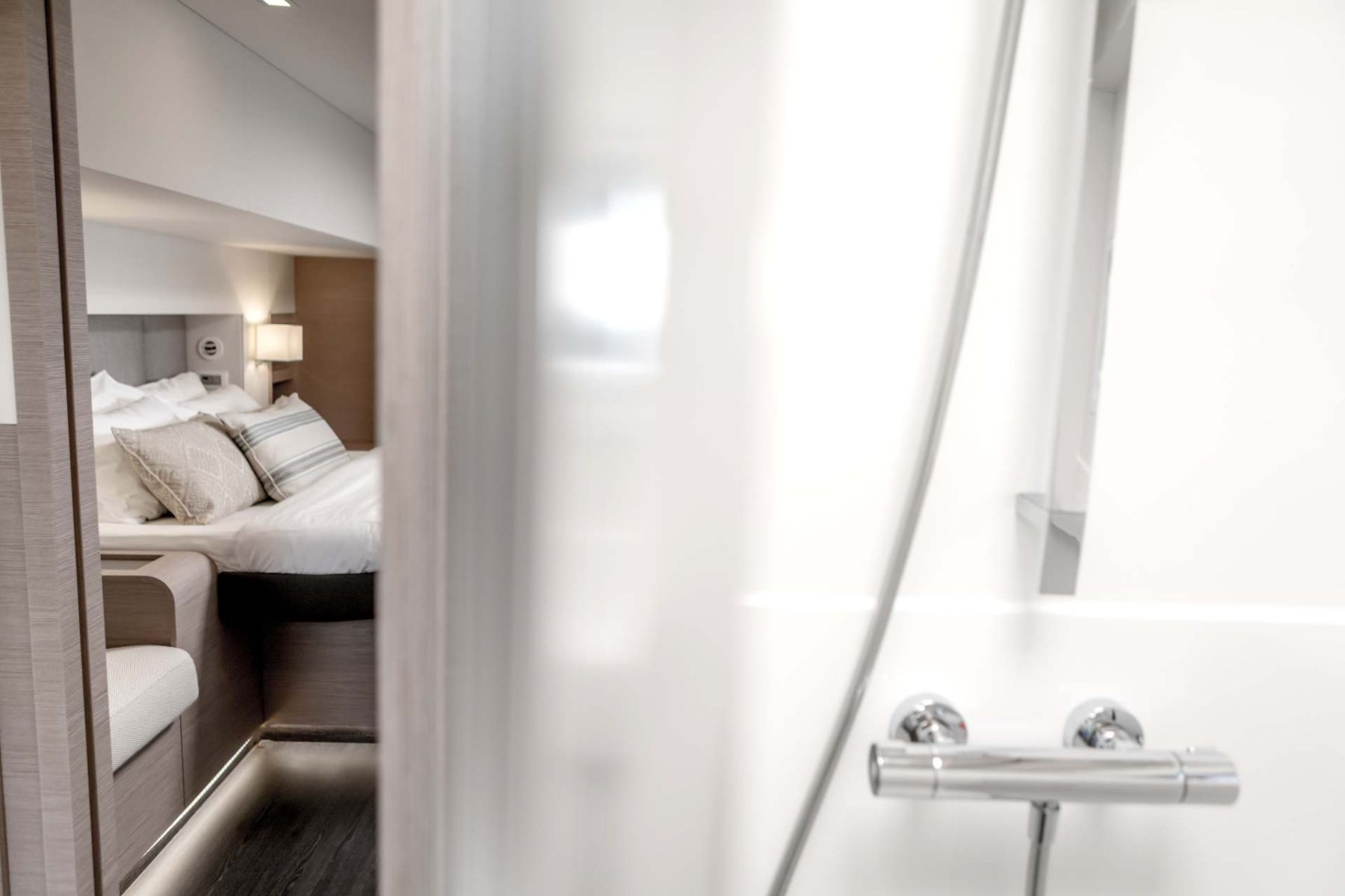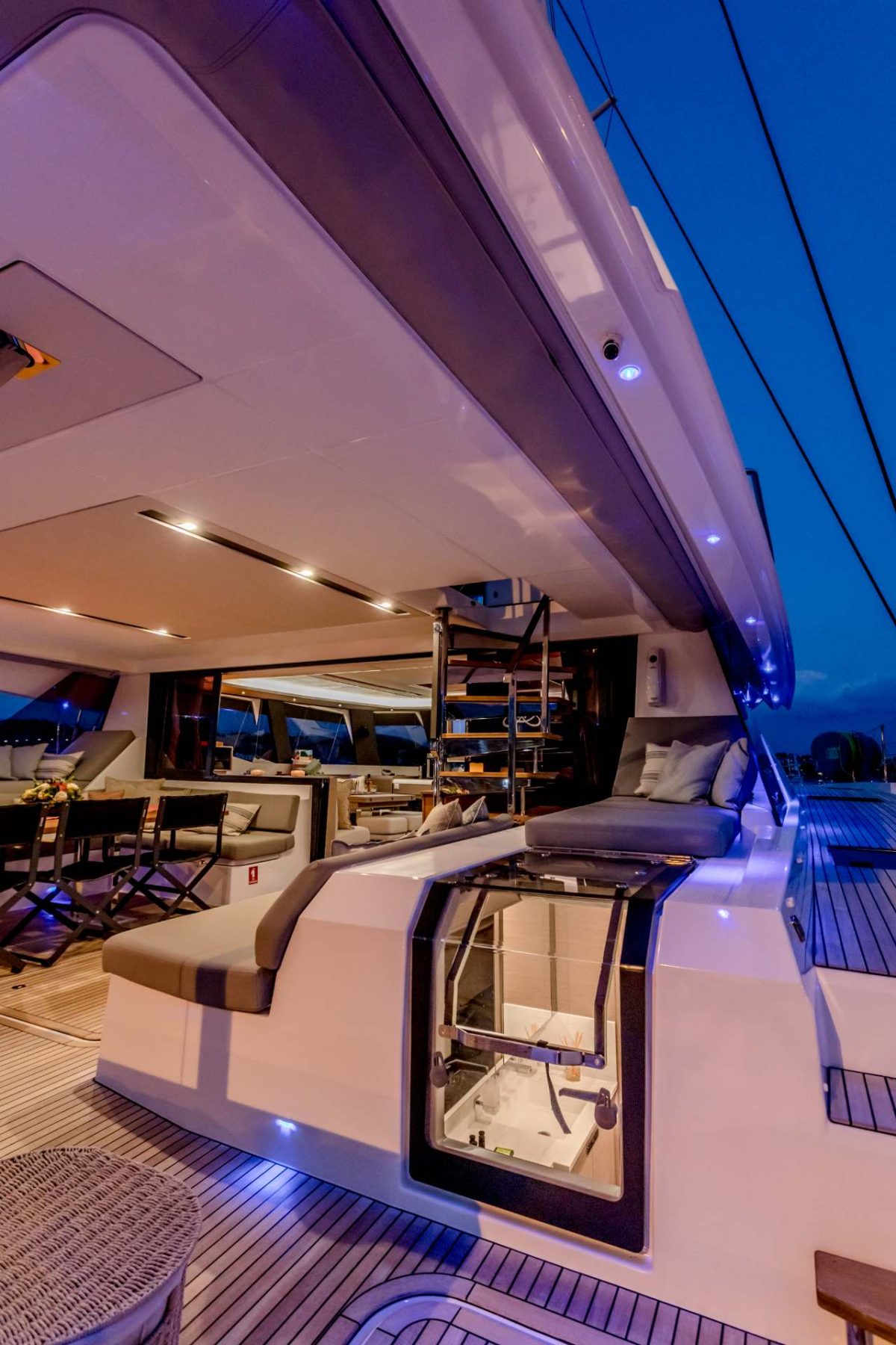 Achieving the perfect blend of space and intimacy, S/Y NAMASTE will enchant you and inspire sailing experiences that bring friends or family together for unforgettable moments. S/Y NAMASTE has been carefully designed to create spaces that cater from the most lively social gathering to the most relaxing moments of solitude. Its expansive 27,5m2 cockpit, decadent foredeck with modular sunbathing stations, its 30m2 flybridge, and its generous cabins all provide opportunities to engage or reflect in dynamic or more peaceful settings. Inspiring social unity with its generous and refined living areas, with her galley down layout her large main saloon area with access both to the foredeck and aft deck is the perfect yacht.