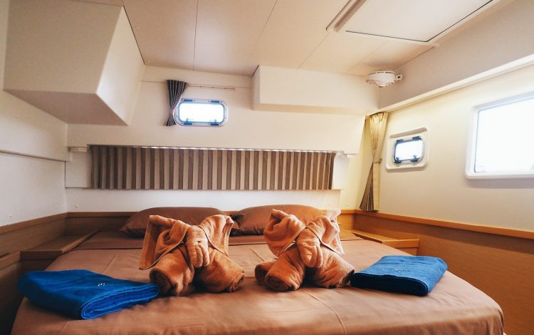 Having joined our Charter Fleet last year, the Lagoon 42 sailing catamaran “P&B” is a great example of the Lagoon owner version layout. She is ideal for a family trip with three comfortable cabins, a well-equipped kitchen for meals and snack preparation, a stunning cockpit offering shade and breeze in equal amounts and easy direct access to the sea with swim ladders. She is now offering special ‘All Inclusive’ packages for weekends and long weekends.