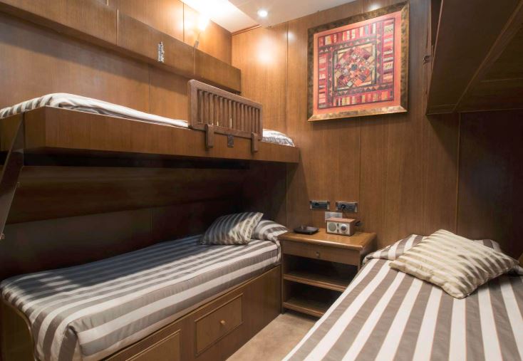 ARKTOS的内部布局最多可容纳11位客人,共有5个房间,包括一个主人套房,2个双人舱,2个双床舱和1个拉杆床。她还可以搭载多达6名船员,以确保轻松的豪华游艇体验。永恒的风格,美丽的家具和奢华的座椅,创造了一个优雅和舒适的氛围。