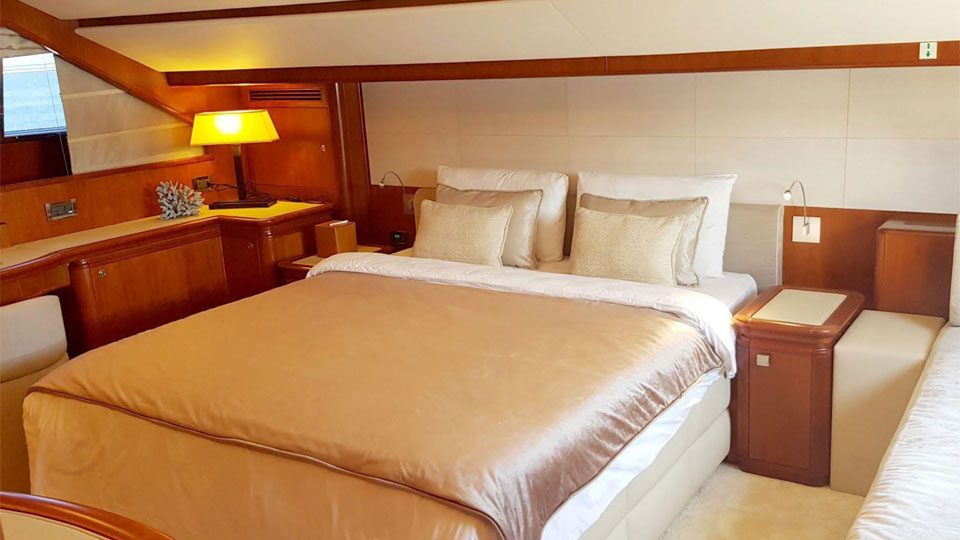• Master Suite (Full-beam, main deck)