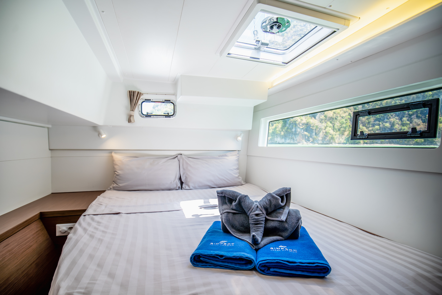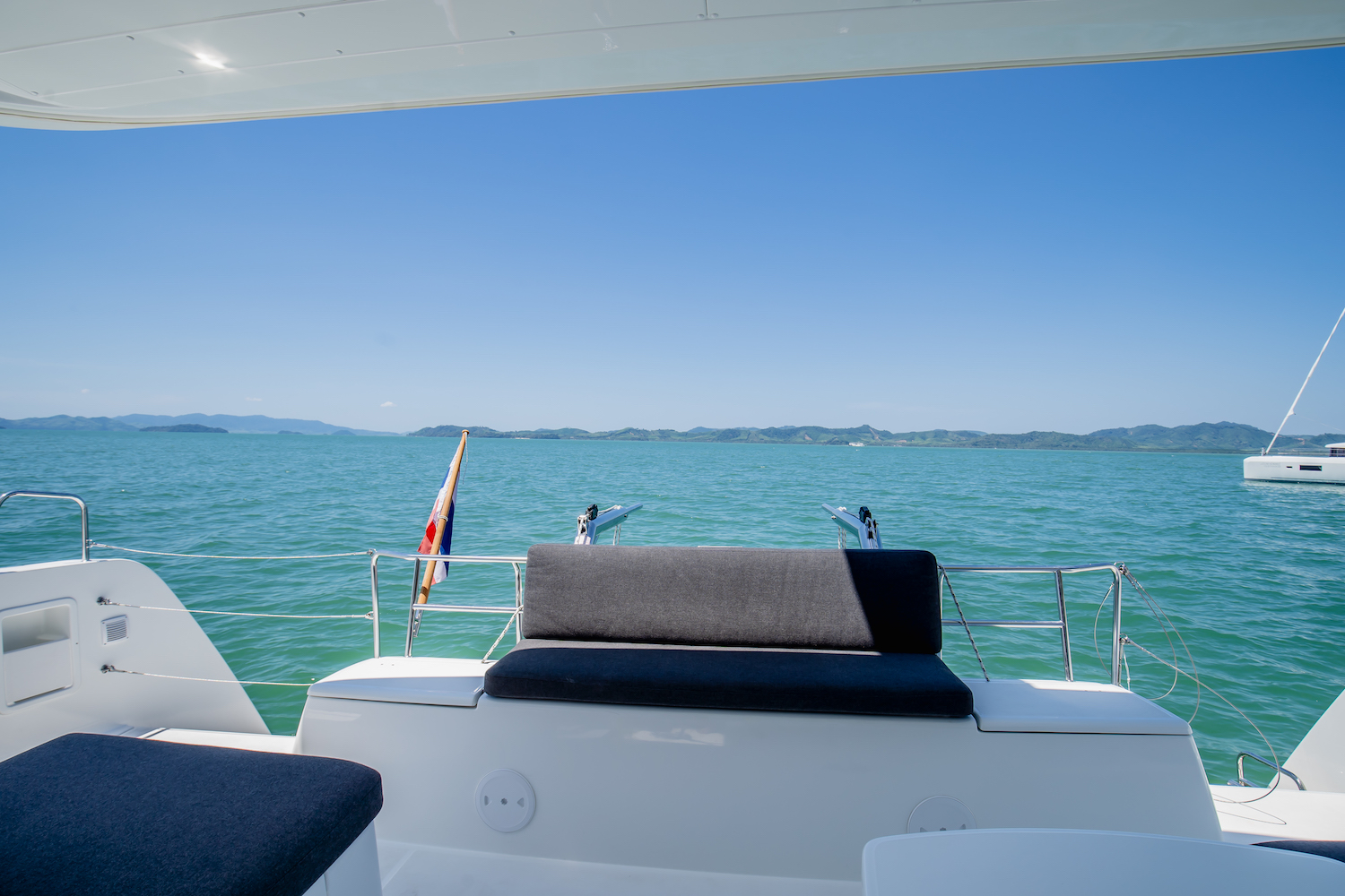 At the foredeck of tis Lagoon 40 (K-35) has been added some softness to cover up the deck hatches and sun lounging cushions – making this an ideal spot for sun tanning, sunset watching, and star gazing at night.