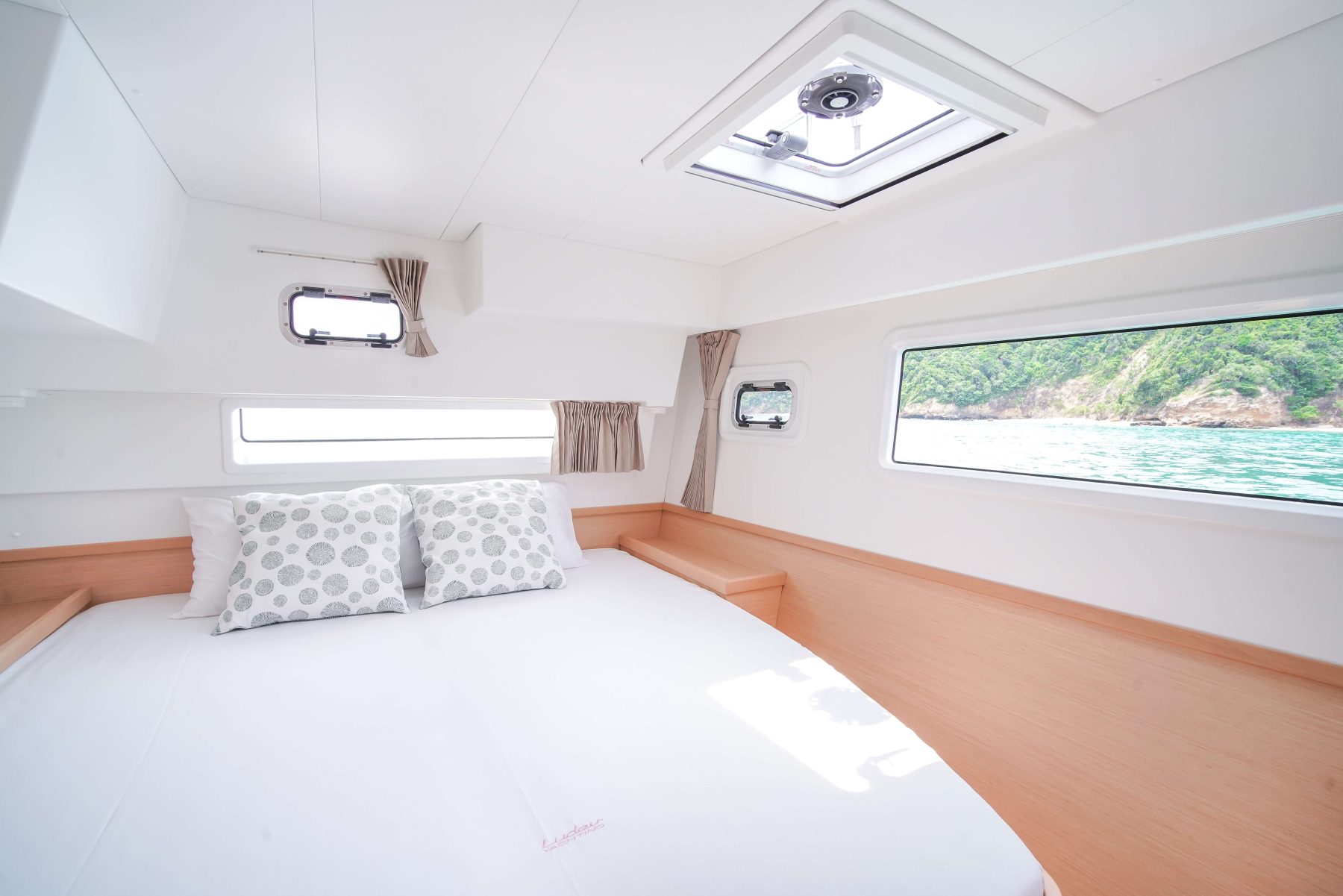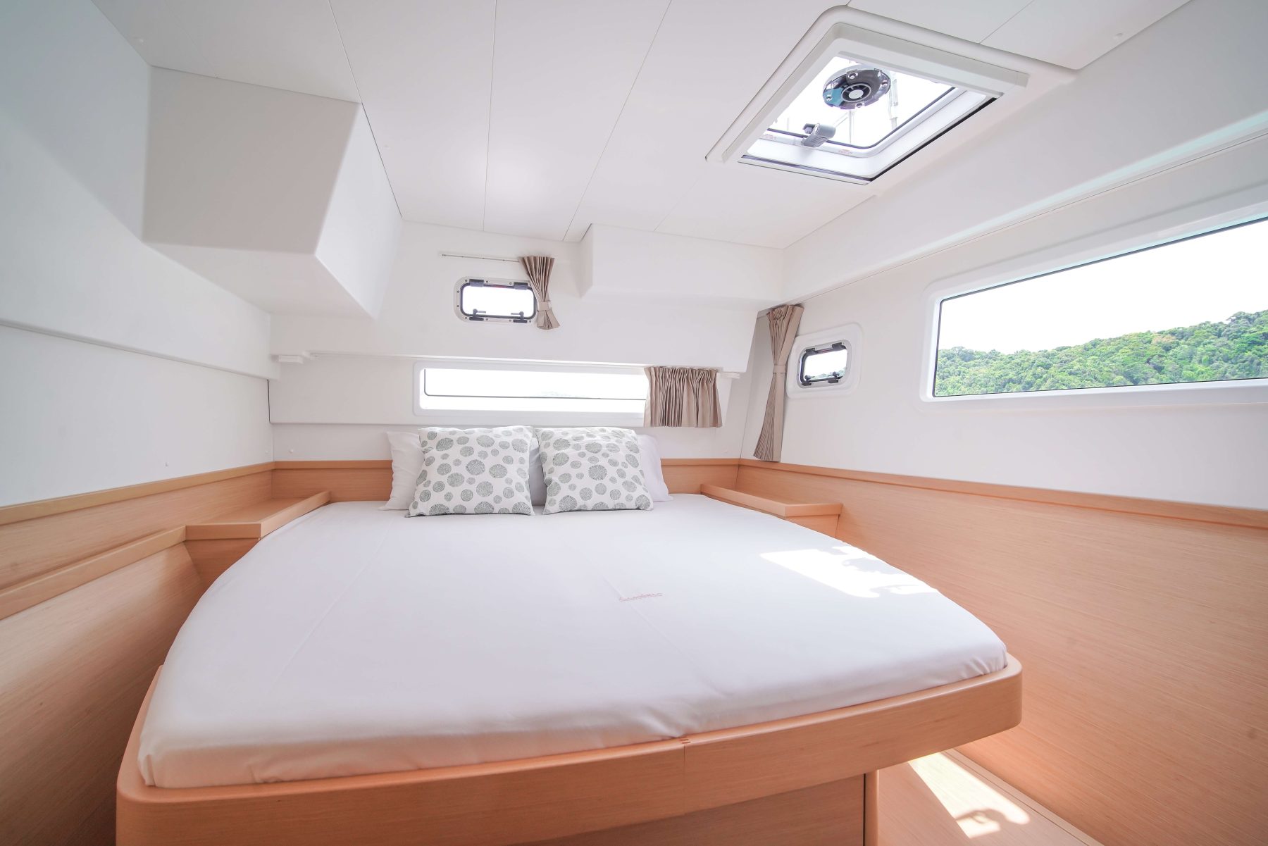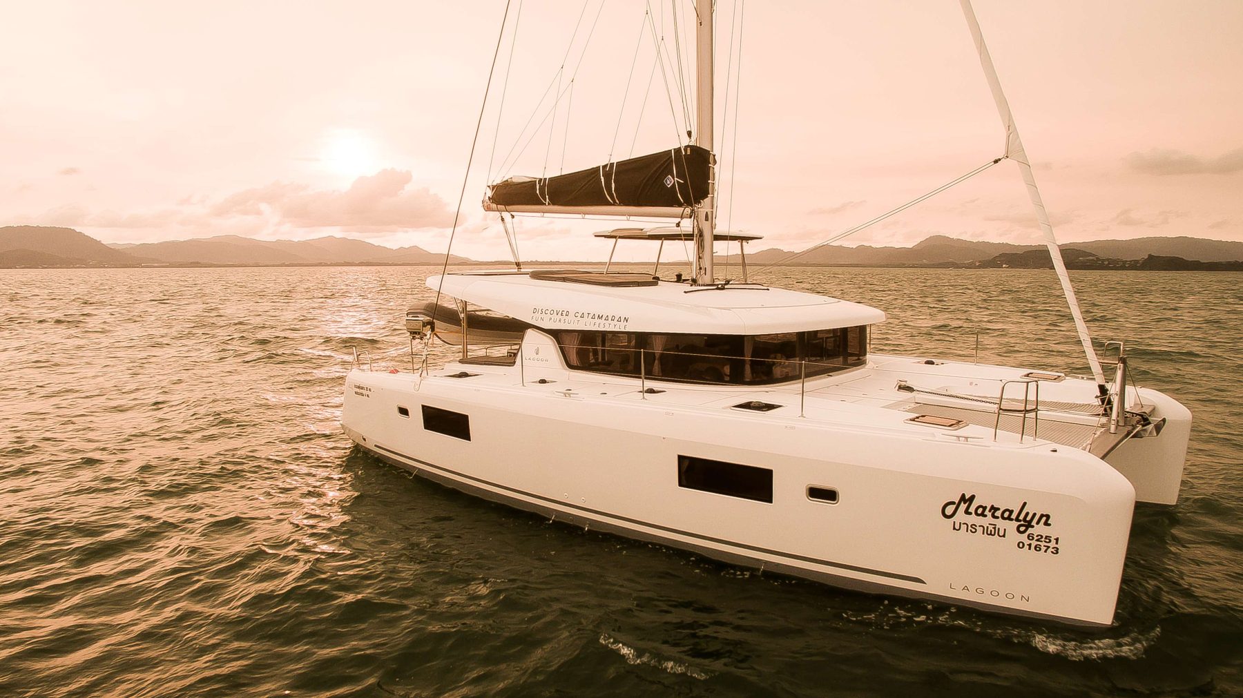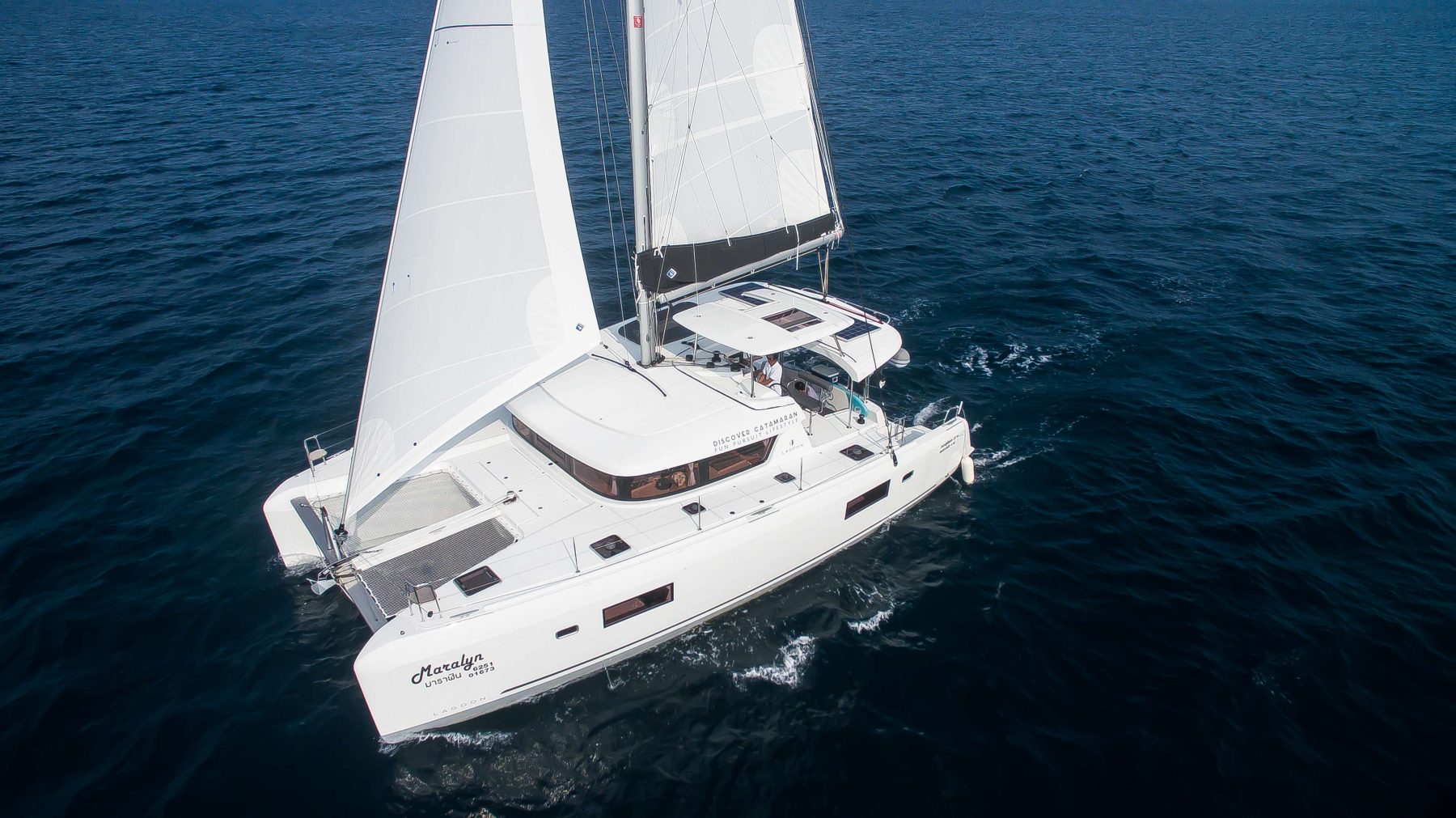 S/Y Maralyn is a 2019 Lagoon 42 in 4-cabin layout version. Being one of Lagoon’s newest cruising catamaran, she’s renowned for her remarkable shape of being both curvaceous and sleek, not to mention fun to move (or lounge) about. This freshly designed 42 is a perfect sailing catamaran for one or two families or a group of close friends who gather to discover the Andaman islands together, other short island hops or a bit farther afield.