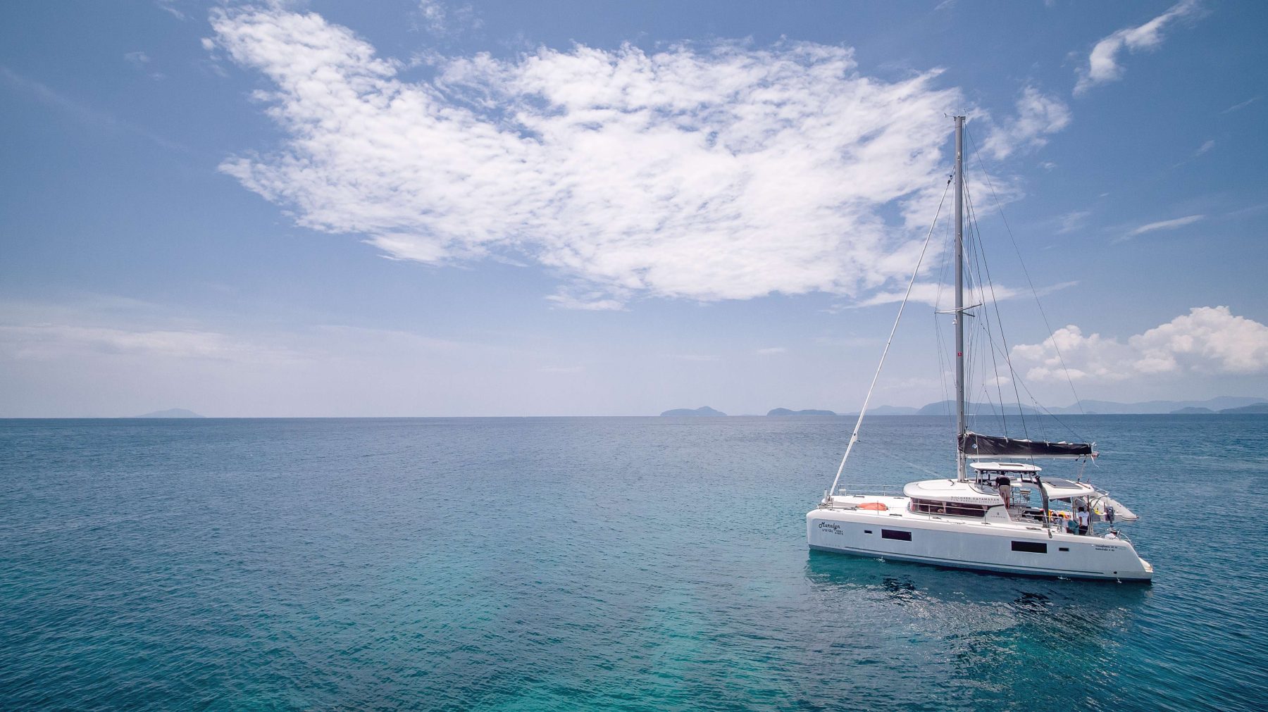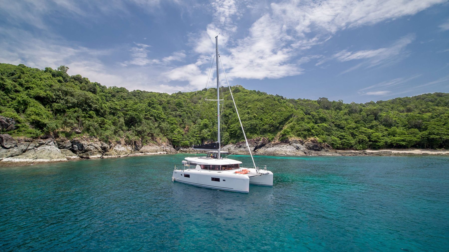 This new sailing catamaran is available for bareboat charter in Phuket, Thailand.
