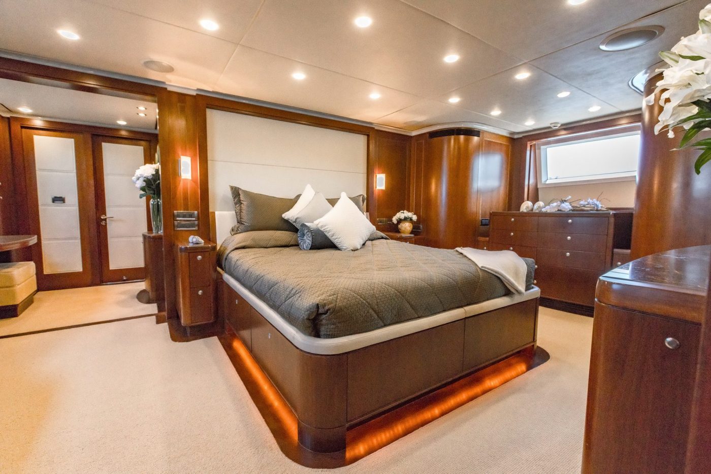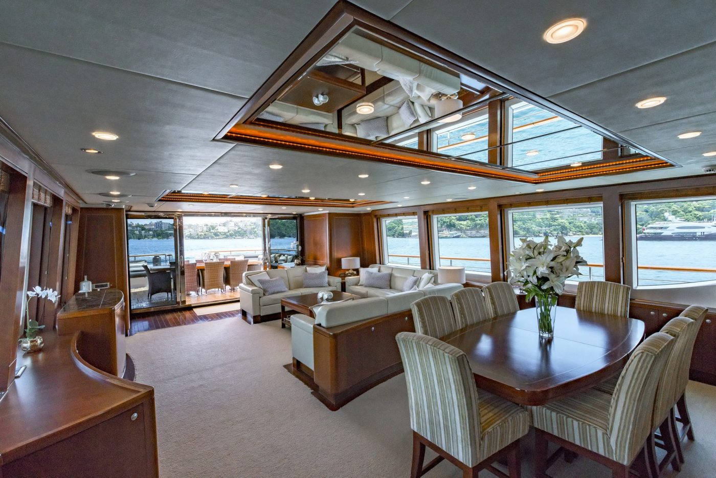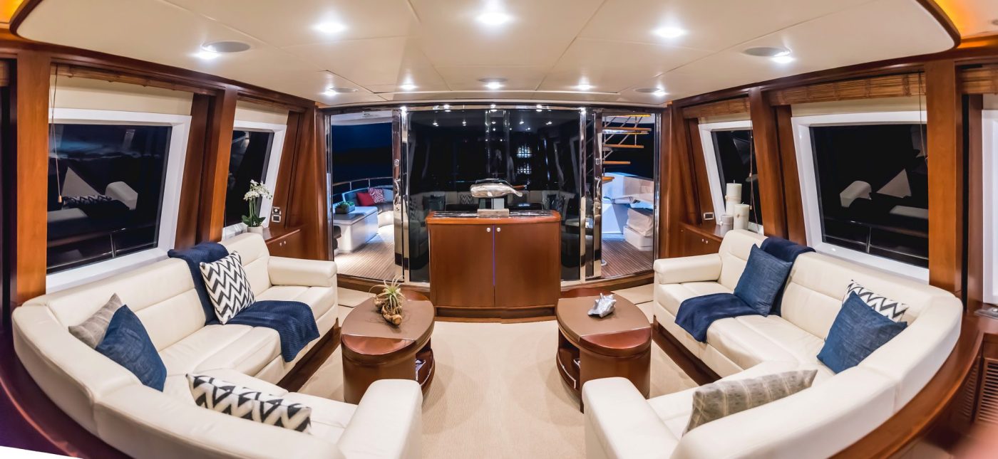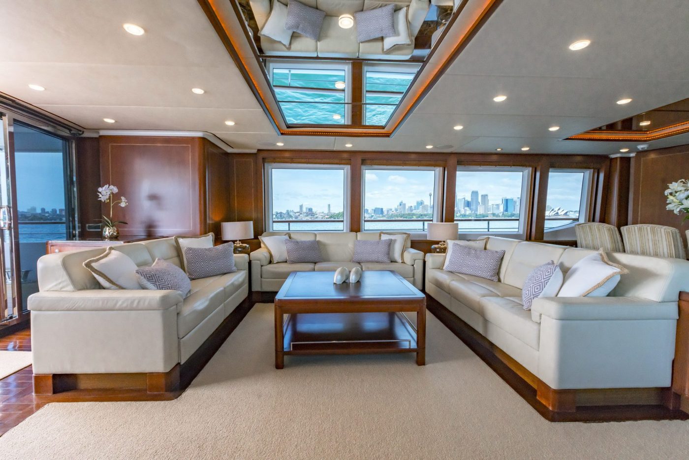 Her spacious five cabins can comfortably accommodate 12 guests onboard for overnight charters, while her expansive deck and salon space is ideal to host luxury private events for up to 80 guests at cruising.