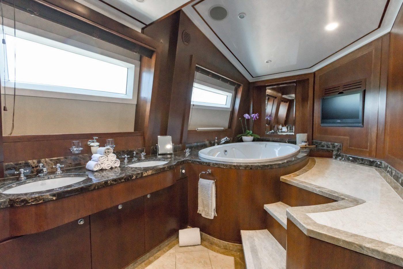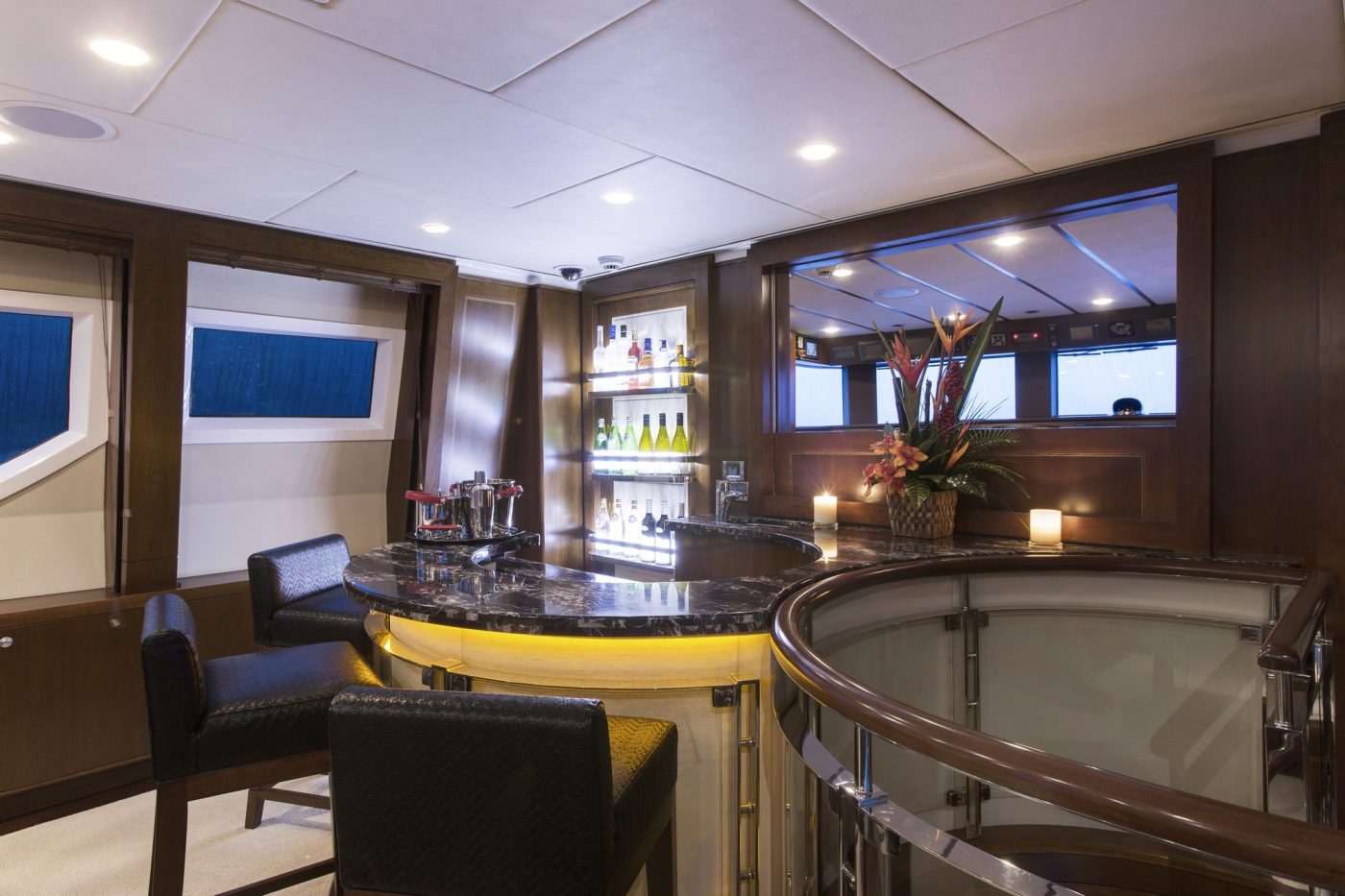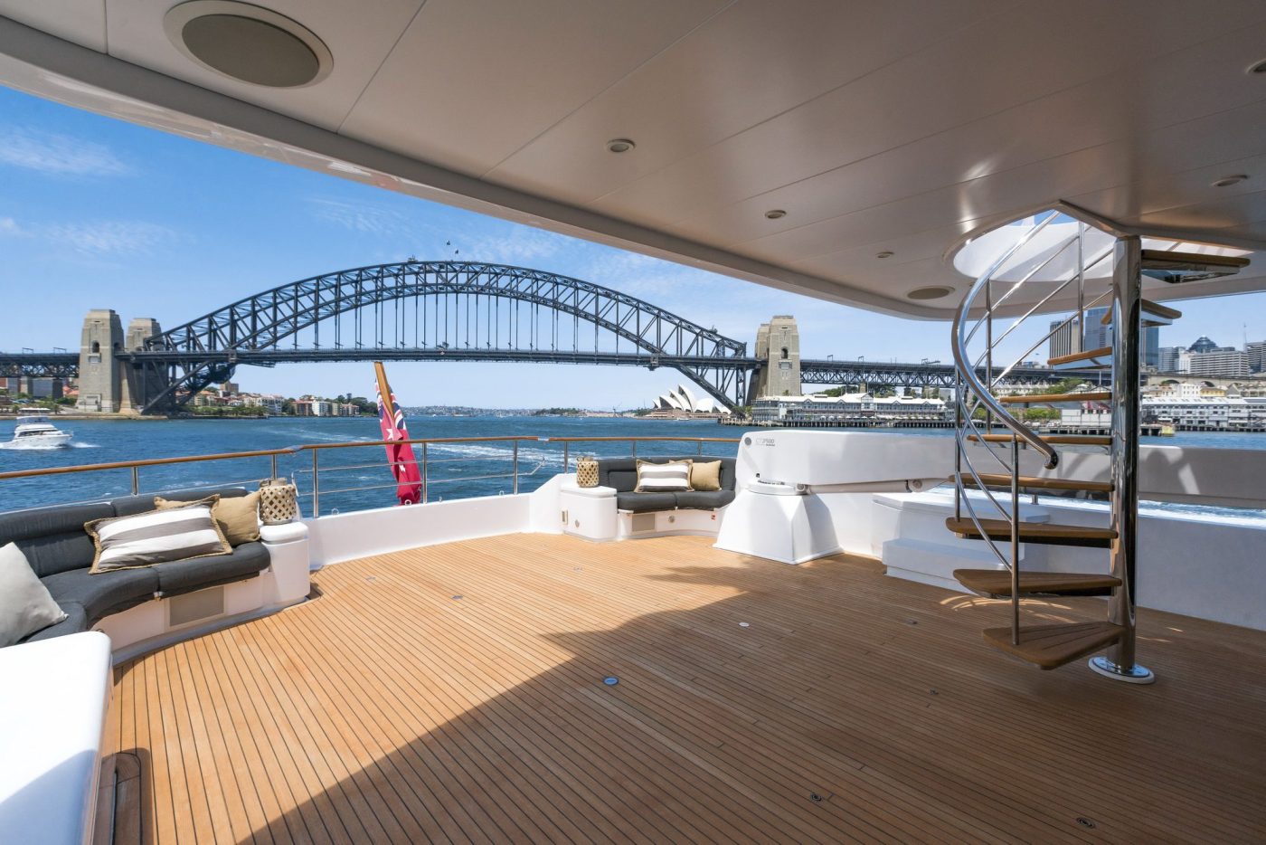 Her spacious five cabins can comfortably accommodate 12 guests onboard for overnight charters, while her expansive deck and salon space is ideal to host luxury private events for up to 80 guests at cruising.