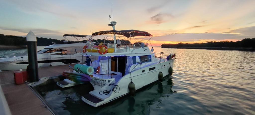 My Escapade is our newly added 46ft Luxury Power Catamaran; Built and delivered from France. It can accommodate up to 23 guests. This twin-hull yacht with its 21.5 ft width provide better stability than single-hull boats. A better choice for those who get a little sea-sick. It takes you on a luxurious yachting experience and escape from your busy city life for an exceptional voyage.