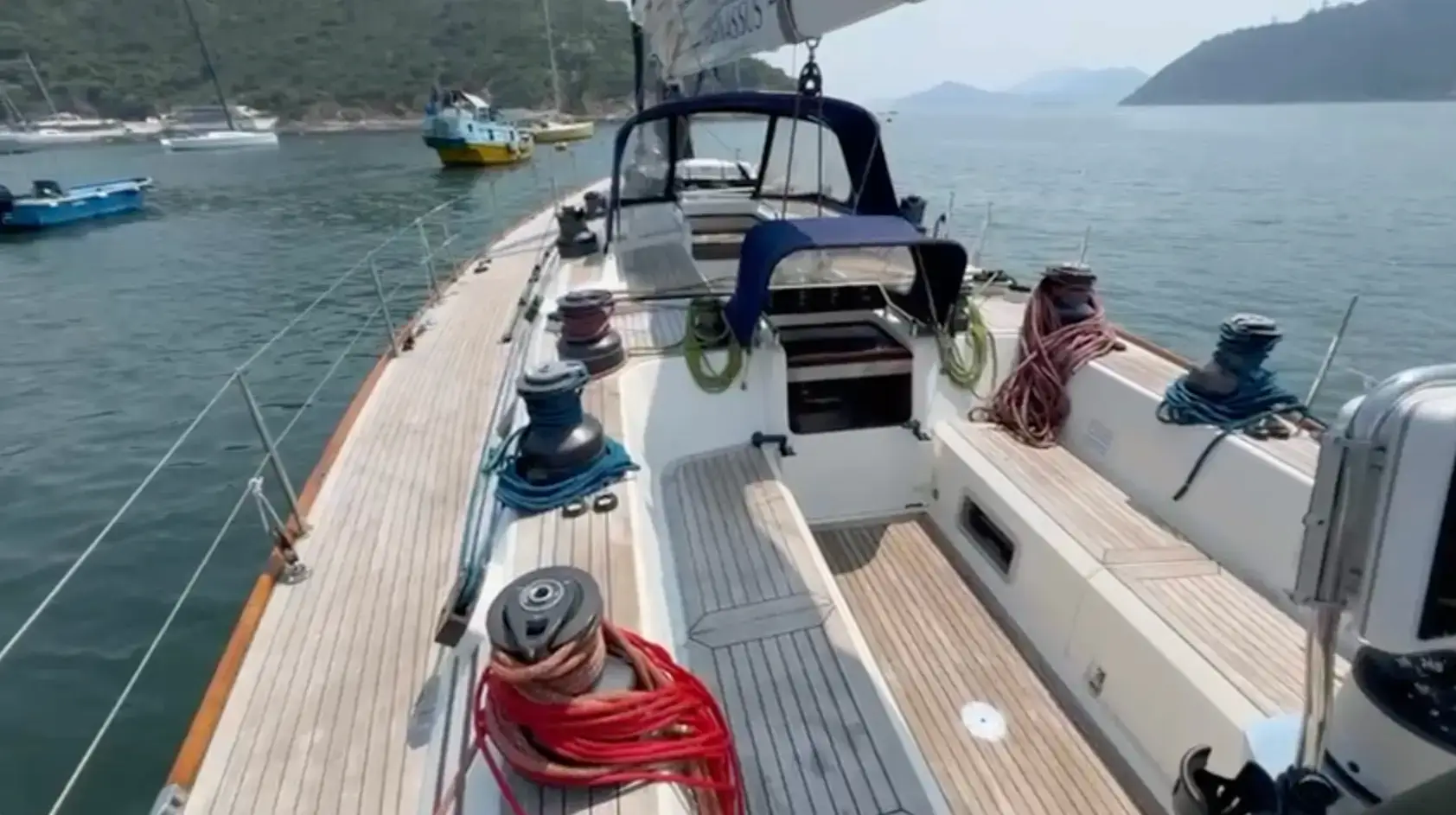 Electric winches: 2 x primary (aft cockpit), 1 x mainsheet (aft cockpit), 1 x halyard (mast), plus 10 non-powered winches